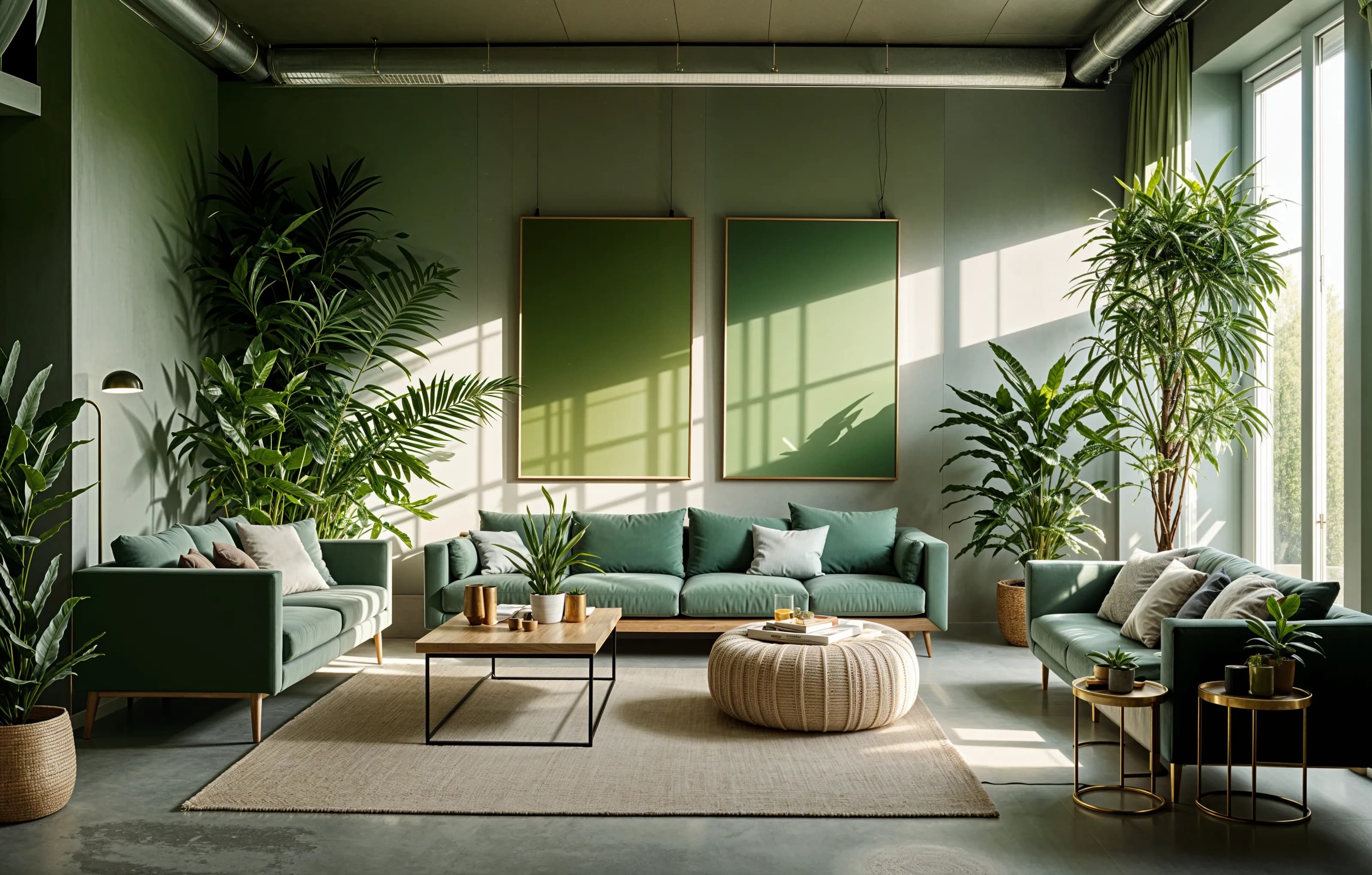Biophilia = love for plants. With a focus on sustainability and human well-being, this style aims to reduce stress and enhance productivity by bringing a sense of nature to the interior. It utilizes elements such as abundant natural light, organic shapes, carefully selected sage green and living plants to create a harmonious and balanced environment. It blurs the boundaries between indoor and outdoor spaces, promoting a sense of calm and rejuvenation.