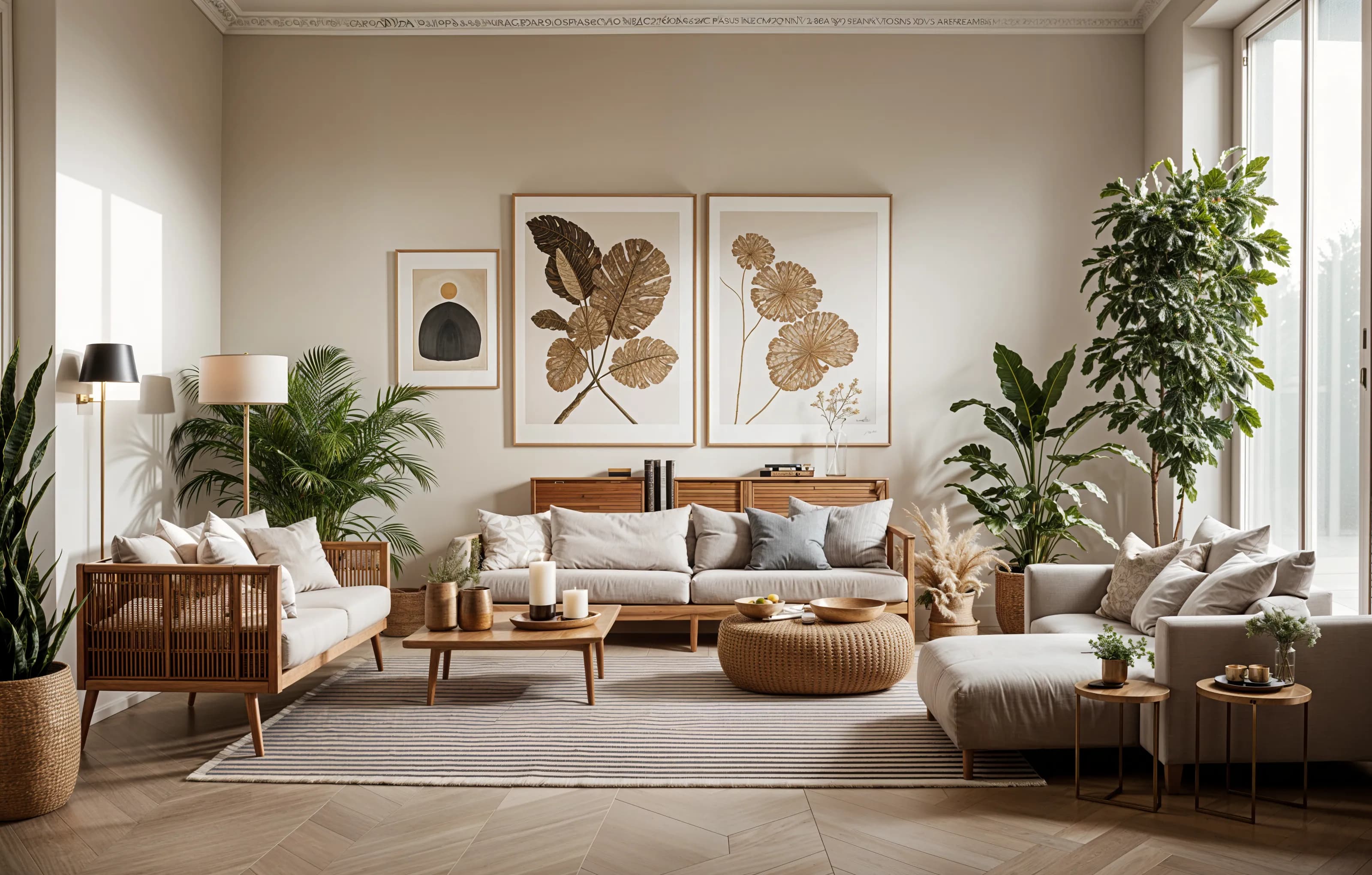 A free-spirited design approach that blends diverse elements from various cultures, boho style has evolved in recent years to embrace minimalism where finding balance is key to creating a harmonious and visually pleasing space. This style showcases a relaxed and layered atmosphere with an array of decor, including vintage furniture, global artifacts, and handmade crafts, complemented by wooden and wicker details. Warm and ear thy tones, along with an abundance of indoor plants, contribute to the Boho aesthetic, creating an inviting and individualistic ambiance.