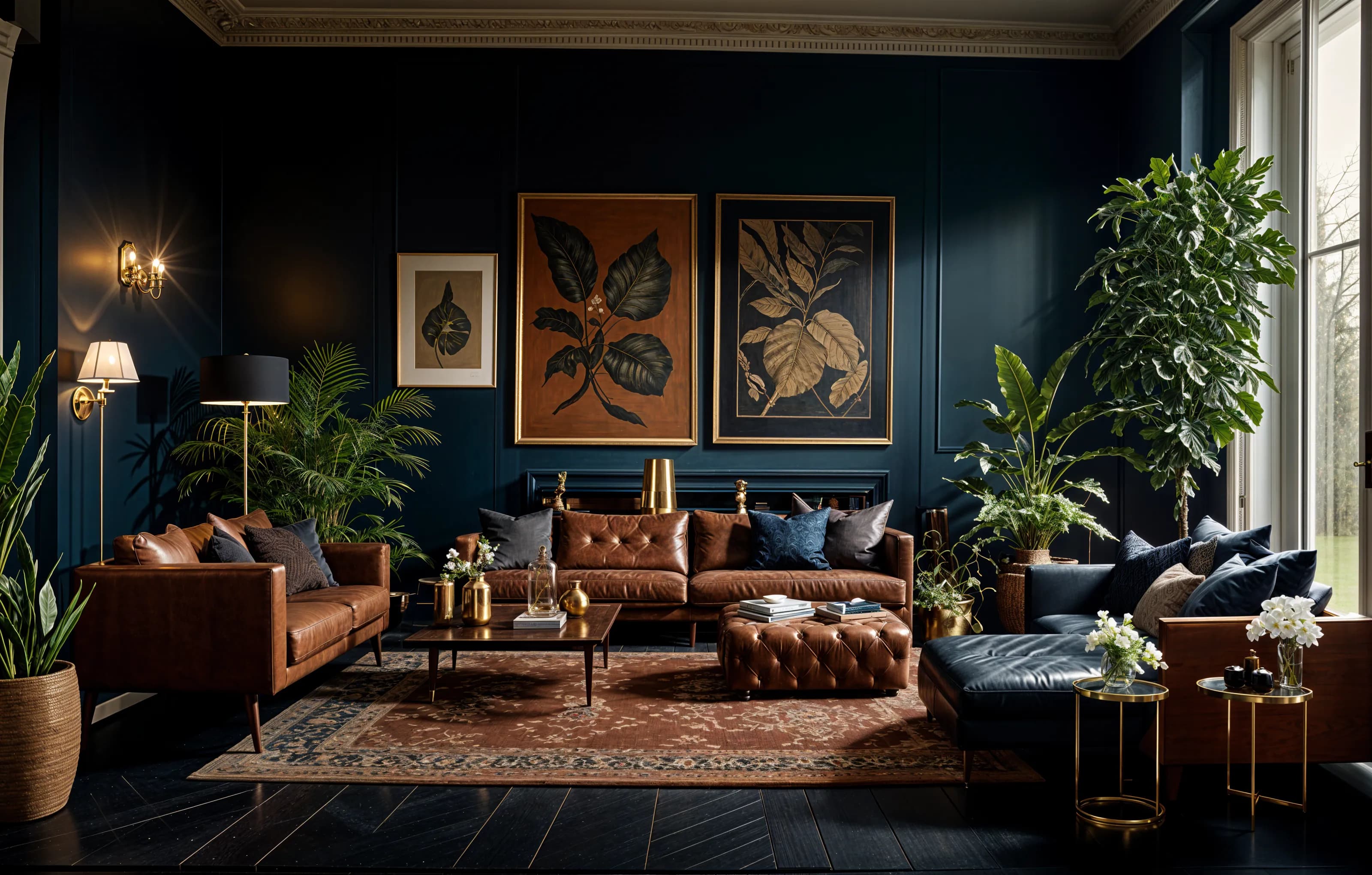 Evoking the charm of mid-20th century aesthetics, this style creates a moody and sophisticated ambiance. It showcases deep, opulent colors along with sumptuous textures like velvet and polished metals. Vintage furniture with iconic designs and clean lines is a hallmark of this style. Complemented by geometric patterns, vintage ar twork, and distinctive lighting fixtures, the dark retro style transpor ts you to a bygone era while maintaining a modern allure in the space.