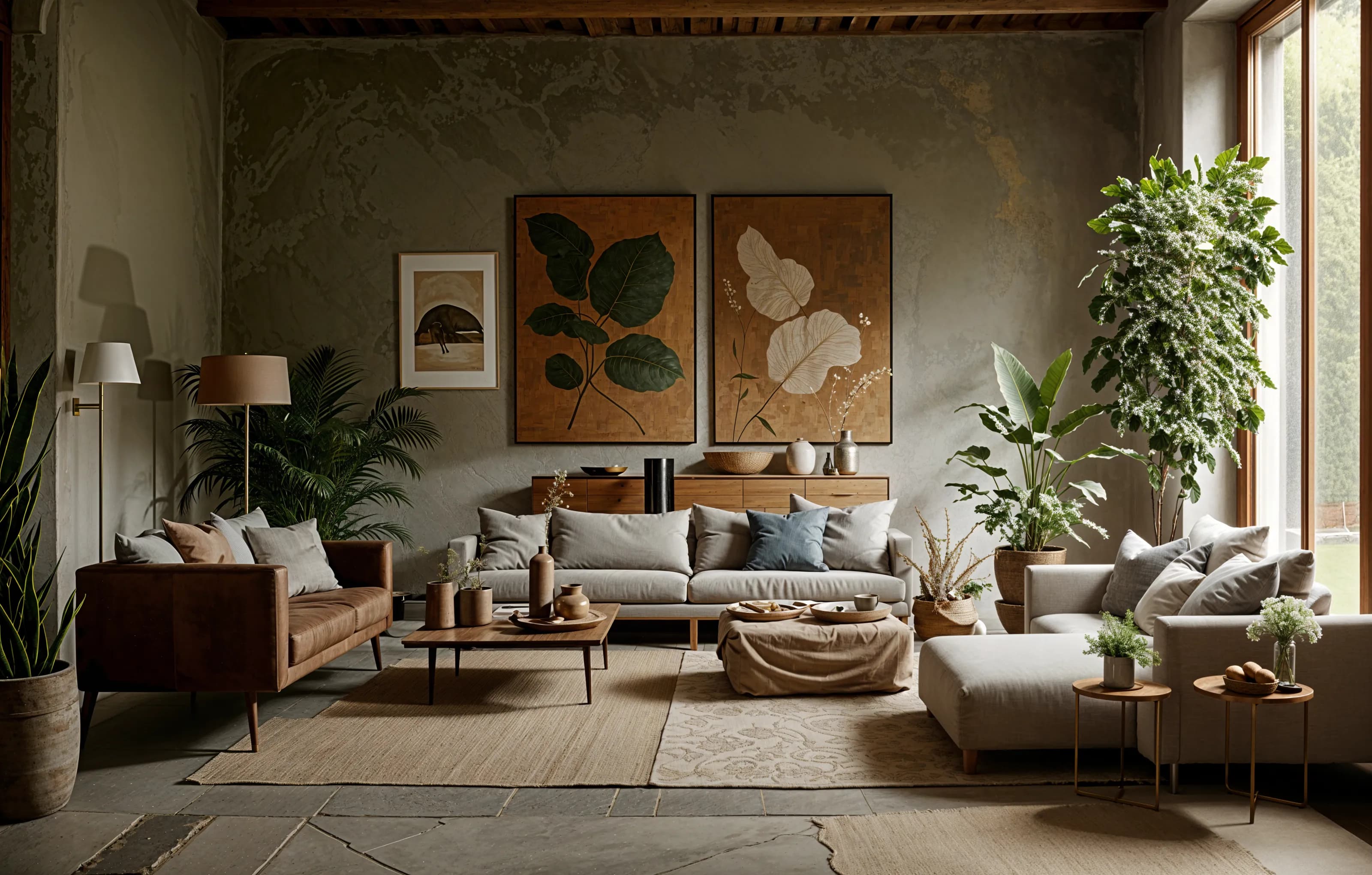 Wabi-sabi is a concept rooted in Japanese philosophy, celebrating imperfection and impermanence. It focuses on the beauty of natural materials, simplicity, and authenticity. Spaces are uncluttered, relying on organic elements like aged wood and stone to connect with nature. Muted, ear thy colors and handmade, unique pieces create a serene and soulful atmosphere, embracing the beauty of life's imperfections and transience. Great to boost your well-being!